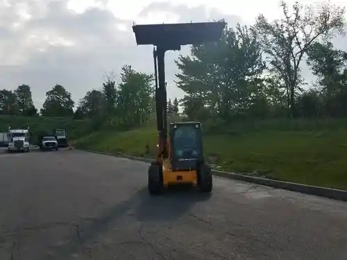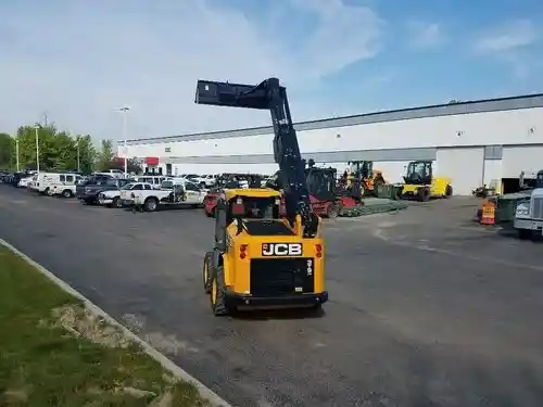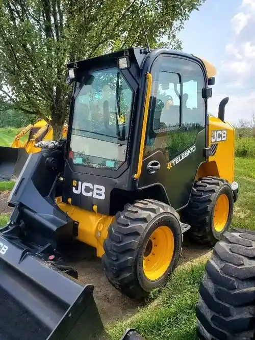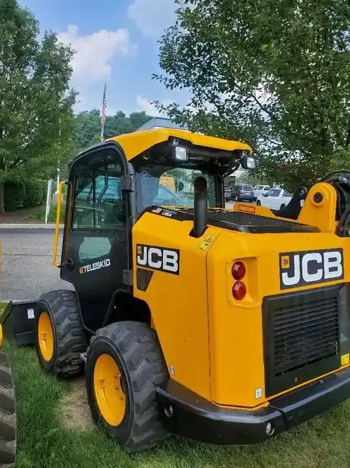 The JCB Teleskid is the only skid steer or compact track loader with a telescopic boom, allowing it to reach 60 percent further and lift 8 percent higher than any skid steer on the market, and-in an industry first-it can dig to a depth of 3 feet. The Teleskid is also the only skid steer to offer the advantages of vertical lift-for greater lift capacity and lift height-and radial lift-for improved excavating and grading-in a single machine. Combining the capabilities of a forkli ft, telescopic handler, compact loader and a skid steer, the Teleskid offers u Nmatched versatility on the job site. Load high-sided trucks without first having to build a ramp. Reach both sides of an 8-foot trailer without having to drive to the far side or reposition the trailer. Lift and place materials and supplies over silt fences and other barriers. Dig out trees and roots, or clear a drainage ditch. Never before have you been able to accomplish these tasks with a skid steer. NOW YOU CAN. Based on JCB’s proven large-platform skid steer design, the 3TS-8W wheeled model has a rated operating capacity of 3,208 lb retracted, or 1,300 lb with the boom fully extended, and an SAE operating weight of 9,859 lb. Proudly designed and built in the United States by the men and women of JCB North America.