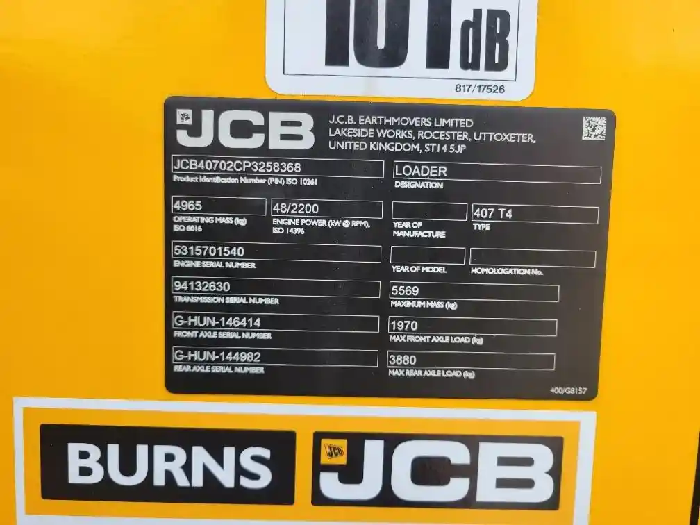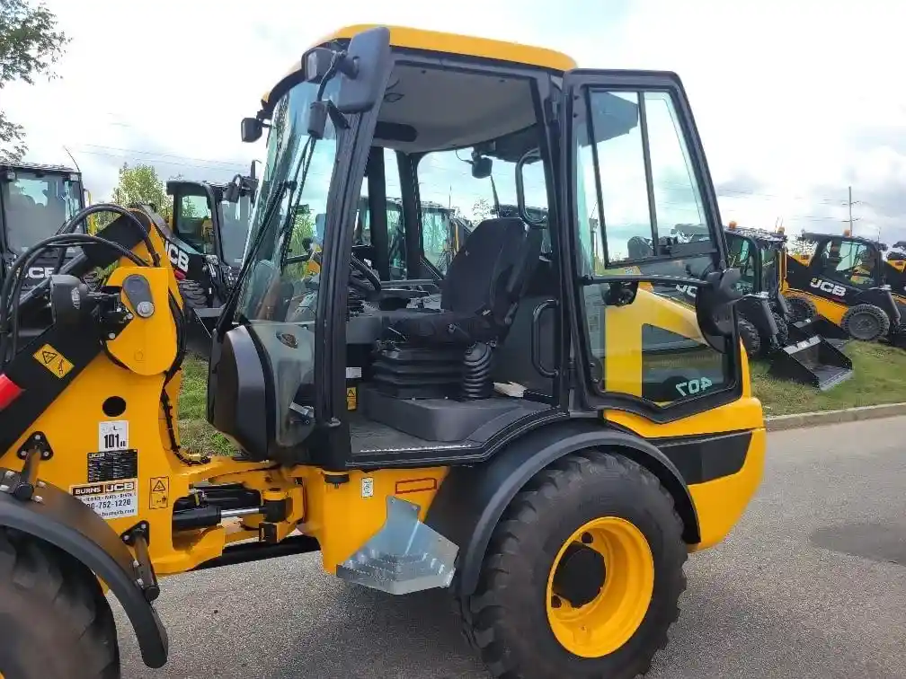 2023 JCB, 407 Wheel Loaders, High spec cab w/ AC, 12 MPH axles, hyd SSL Quick hitch, F & R worklights, 1 yd GP bucket. Warranty thru 5/31/26. Immaculate condition.