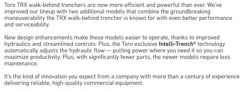2023 TORO, TRX250 Trenchers / Cable Plows – Walk Behind / Stand On, Toro 22983 trencher traction unit, 24.5 Toro engine